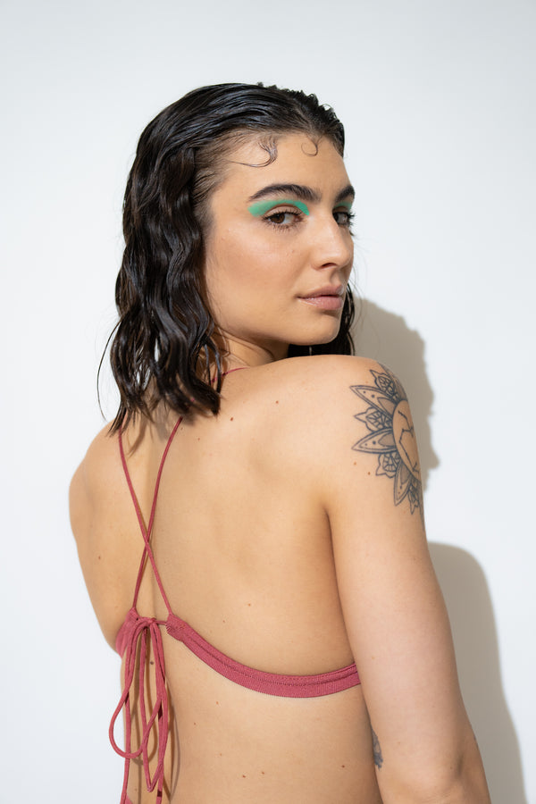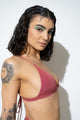 Always in search of the endless summer, the Guava Triangle Top features a sophisticated rib knit fabric with a precious glow and an extraordinary soft and rich hand feel. The Guava is a timeless style with cross back adjustable straps and removable paddings.